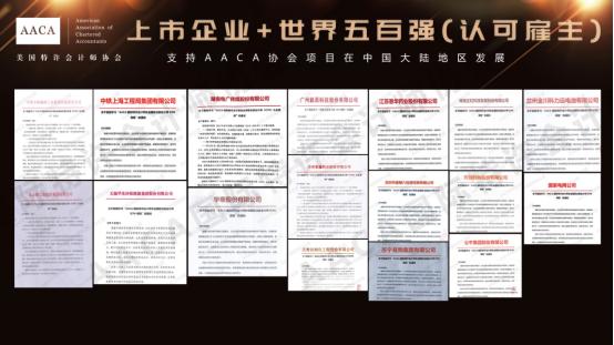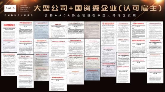AACA国际特许会计师协会ICPA国际注册会计师证书认可计划目前已与政府及行业组织,第三方会计事务所,跨国企业,大型企业,国资类型,大型上市公司,中国500强,世界500强等诸多认可雇主开展合作,旨在帮助学员在财会行业及商界建立成功的职业生涯。通过领先的专业资格和资源,AACA国际特许会计师协会帮助企业建立卓越的财务人才梯队,提升财务团队能力,支持企业财务转型。